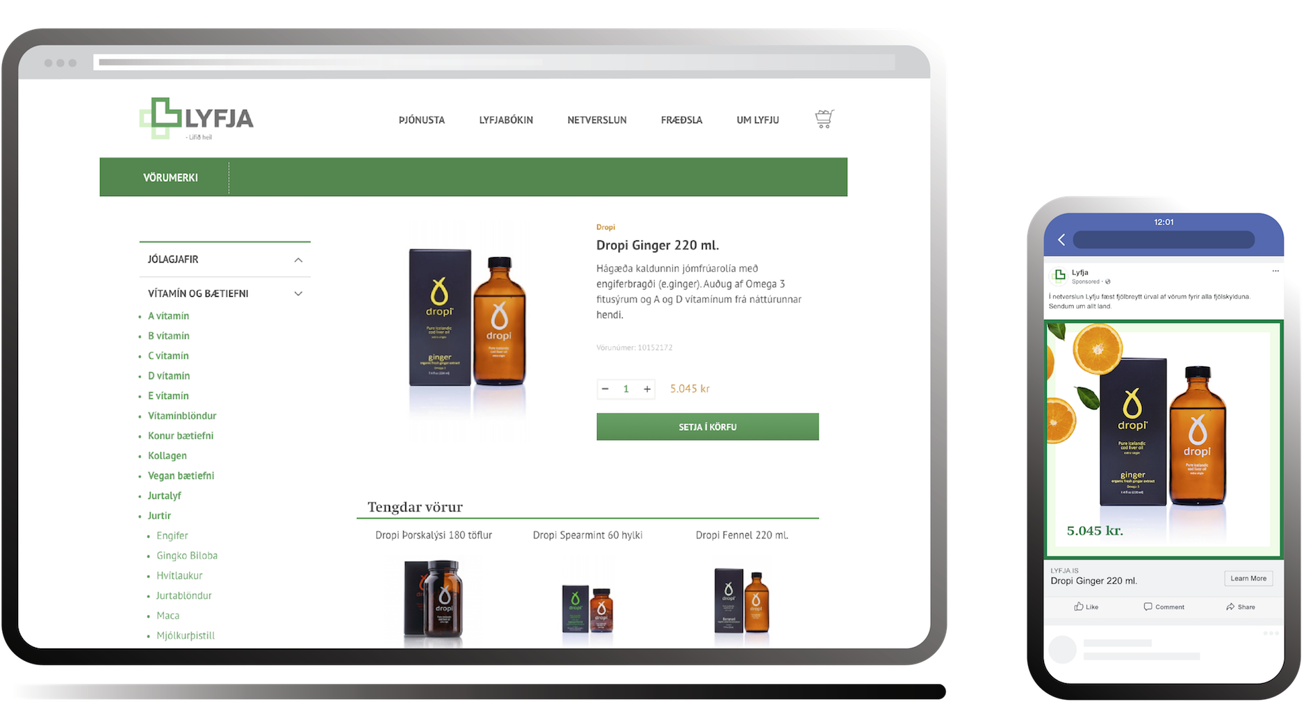 Datera partnered with Smartmedia - the e-commerce platform powering Lyfja’s online store - to establish a seamless integration between Lyfja’s website and Facebook’s advertising platform.